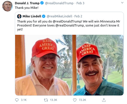 With Trump at one of his golf clubs, which the president retweeted, thanking Lindell