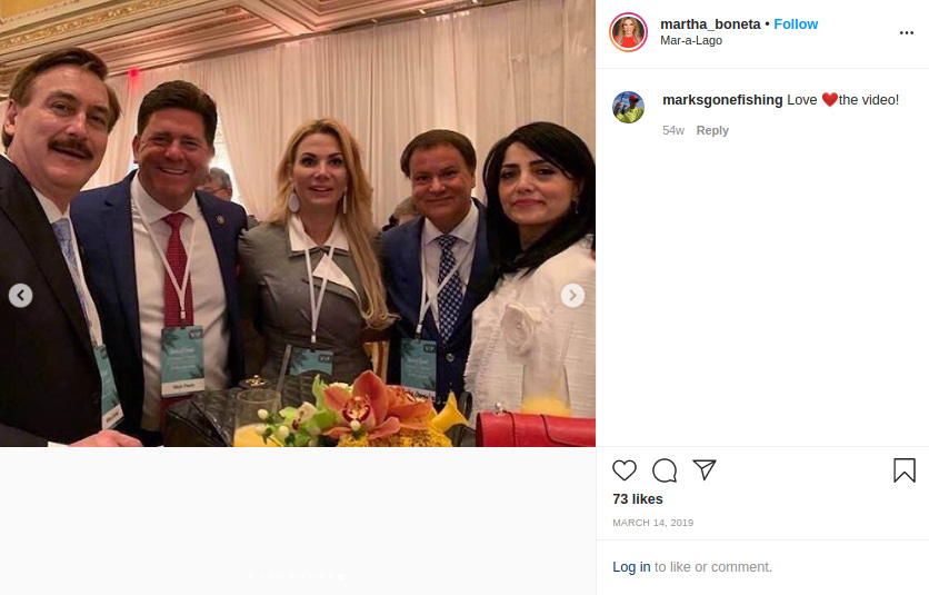 At Mar-a-Lago in March 2019 for a Trump reelection fundraiser with donor Nick Peric, Boneta, tax reform expert Julio Gonzalez, and Rabia Kazan. She’s a Turkish national who contributed $2,800 to a pro-Trump committee, as Roger Sollenberger, Kathleen O’Neil, and Amber Jamieson reported for BuzzFeed News