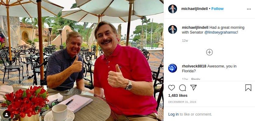 A theory: Since 2015, Lindell has contributed more than $370,000 combined to 40 different Republican candidates and causes, according to data the Center for Responsive Politics compiled. [UPDATE APRIL 1, 2020, 4:23 P.M. Lindell’s GOP contributions actually top $628,000 (H/T Adam Klasfeld of Courthouse News).]