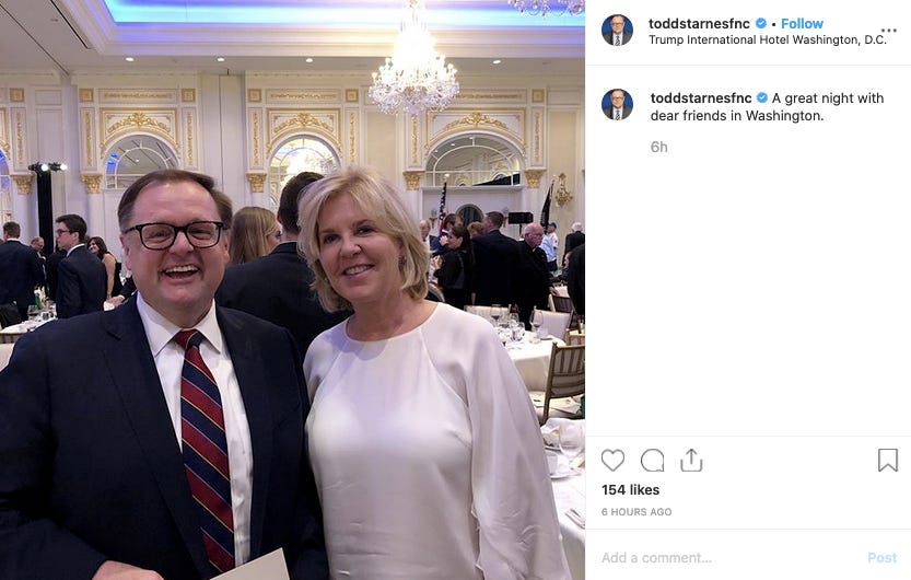 Right wing radio host Todd Starnes, whom Fox News ousted after he suggested Democrats worship the pagan god moloch, had a great night with dear friends.