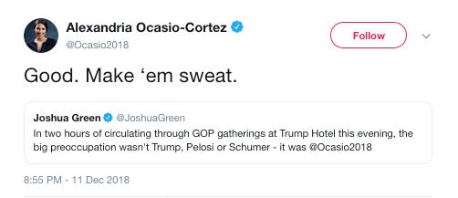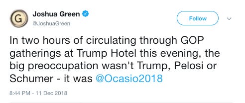 Journalist Joshua Green breezed through GOP events at the hotel last night and noted that the big topic of conversation was Alexandria Ocasio-Cortez.