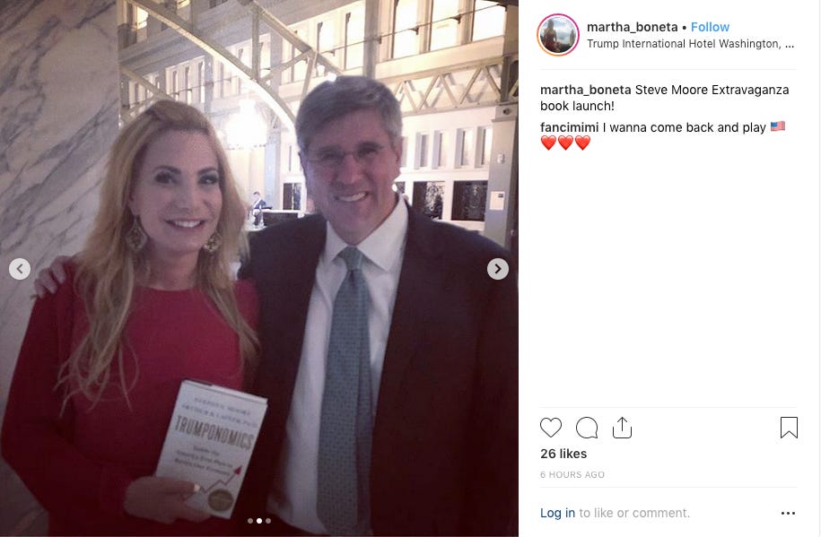 Senior policy advisor for the pro-Trump nonprofit America First Policies, Martha Boneta, posed with Moore.