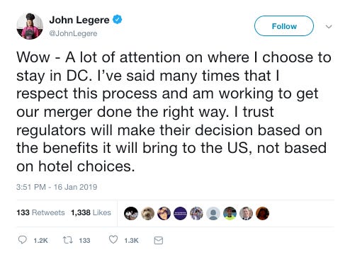 T-Mobile CEO John Legere, one of the aforementioned executives, tweeted this response: