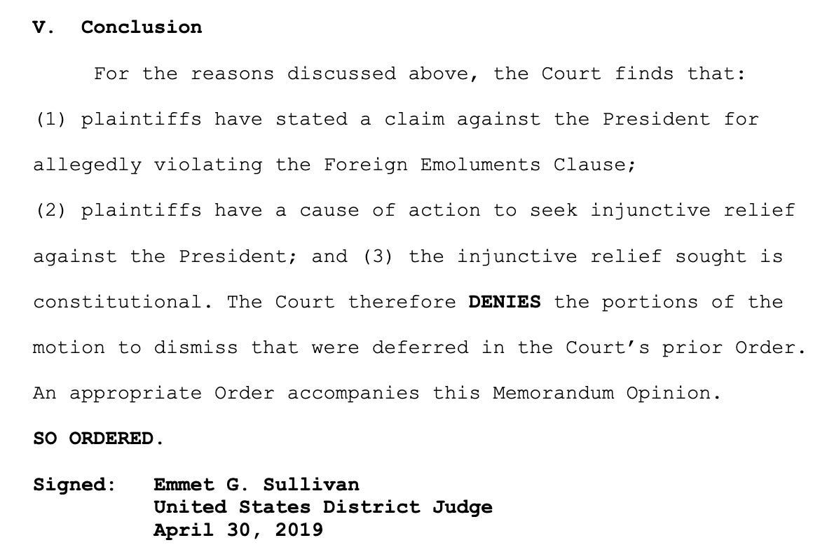 In addition to this suit, two other emoluments suits are working their way through the courts:
