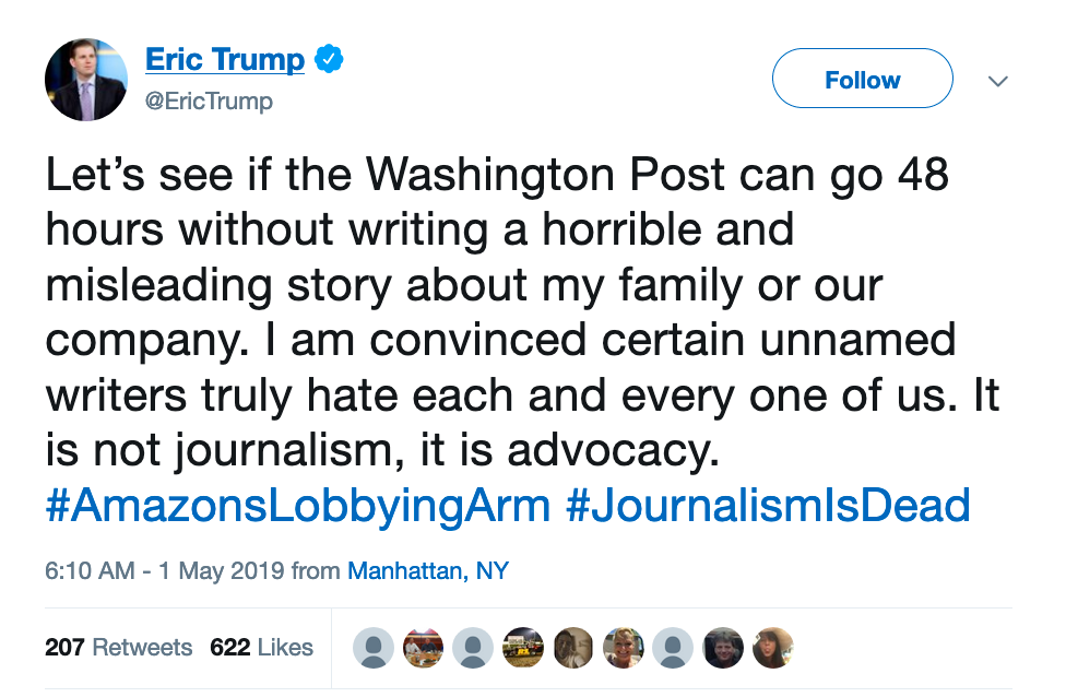 Trump Org EVP Eric Trump appears to have replied to the Post’s scoop: