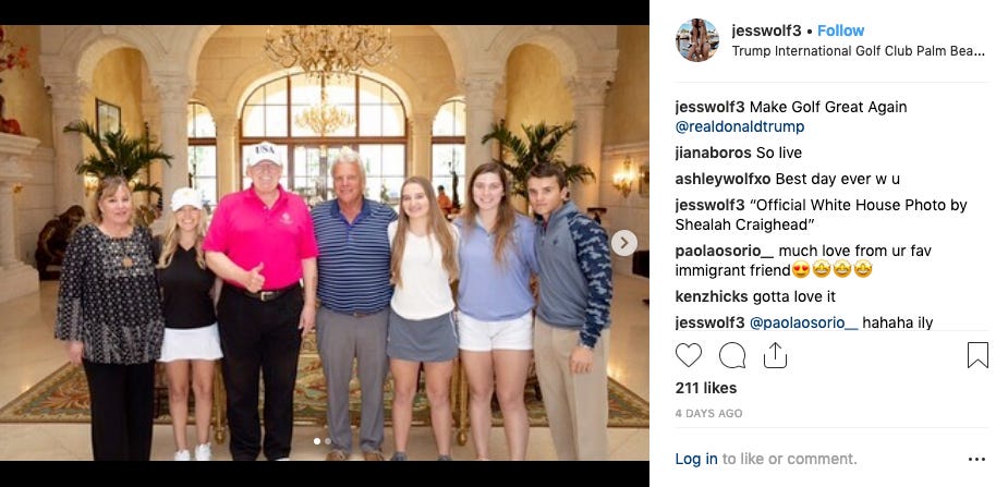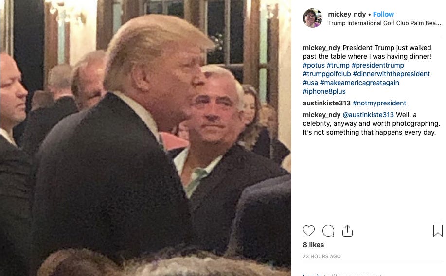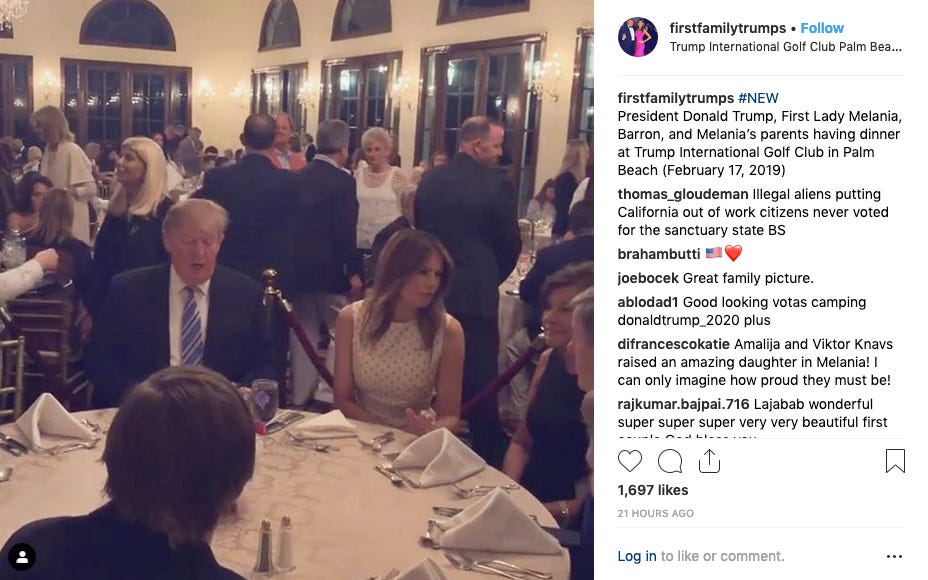 Over the weekend, the president and first lady dined with her parents (who are naturalized U.S. citizens) at the Trump Palm Beach, two days into our new national emergency.
