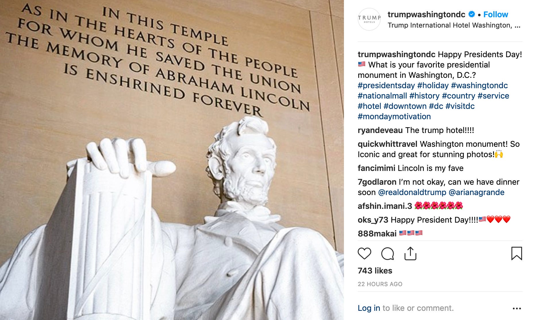 The U.S. president’s hotel used a National Park Service property to promote itself.