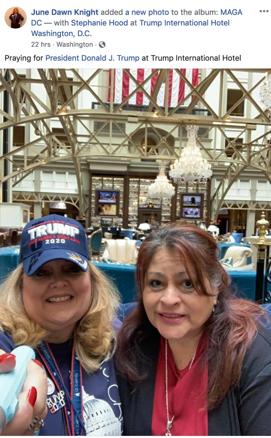 These two Trump supporters showed off one of the Trump Hotel D.C.’s competitive advantages: it’s the sole D.C. hotel where customers can pray for the current U.S. president in a hotel he owns and can profit from.