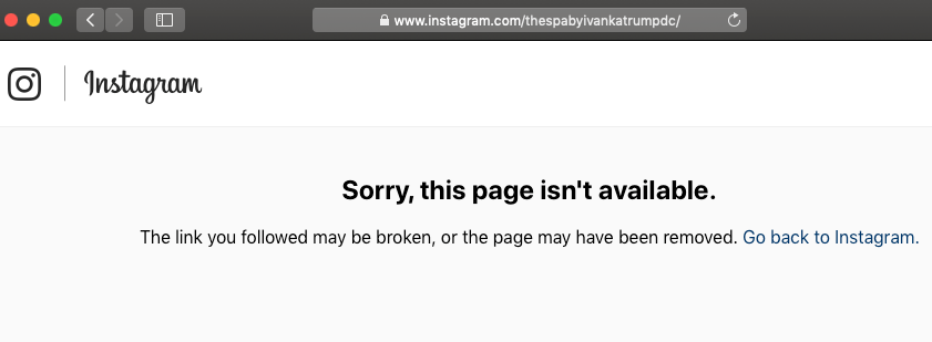 Three weeks after it launched, The Spa by Ivanka Trump’s Instagram page is no more. 1100 Pennsylvania first reported about the page’s existence on Dec. 19. By the following day, its sole post was removed. Now the account is kaput altogether.