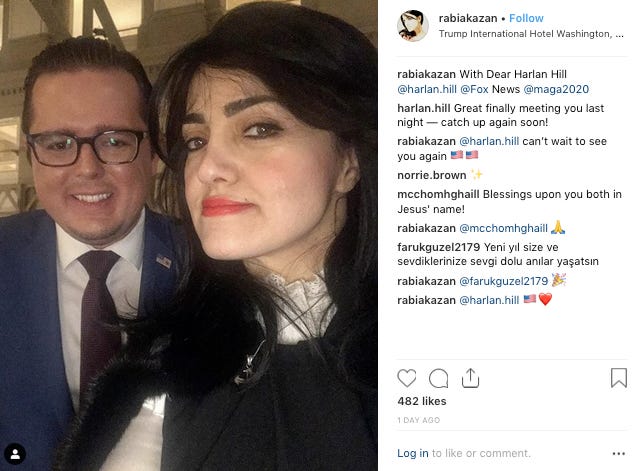 Fox News pundit and Trump campaign advisor Harlan Hill was back at the hotel, posing here with Kazan.