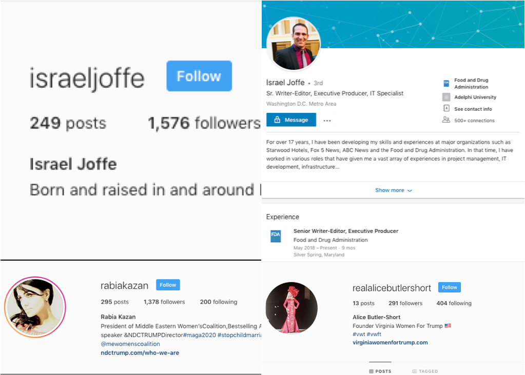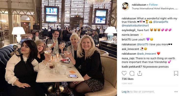 FDA staffer Israel Joffee enjoyed drinks with Rabia Kazan, president of the Middle Eastern Women’s Coalition, and Alice Butler-Short, founder of Virginia Women for Trump.