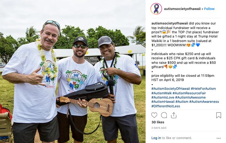 The Autism Society of Hawaii is giving away a one-night stay in a Trump Waikiki suite to its top individual fundraiser.