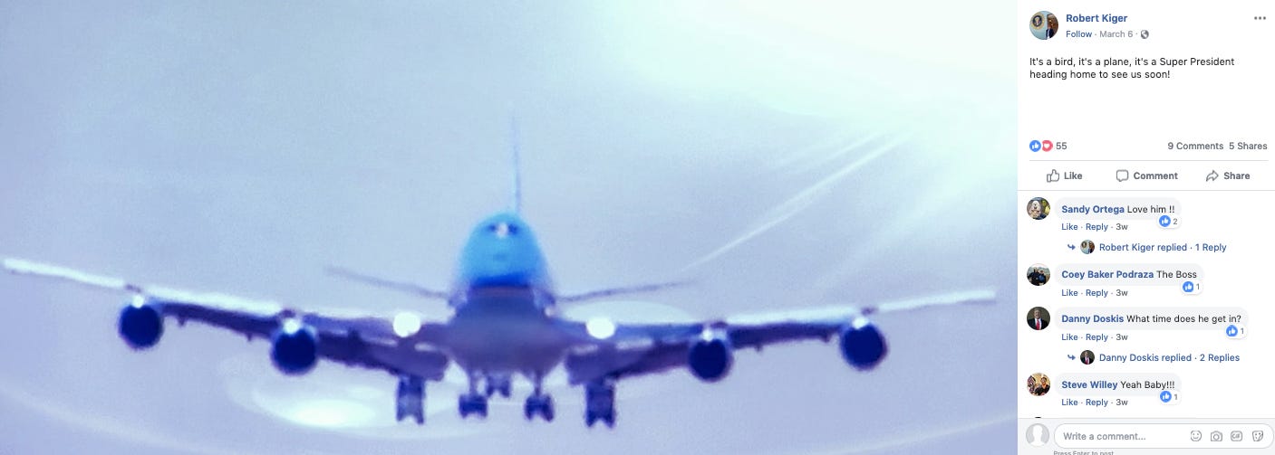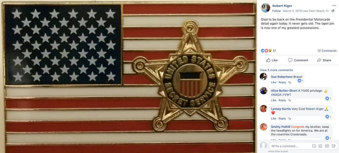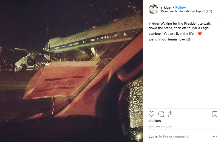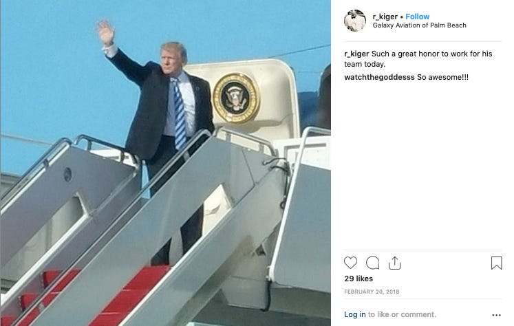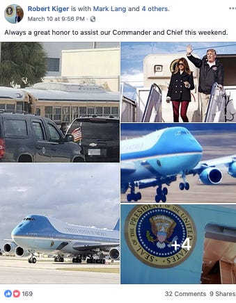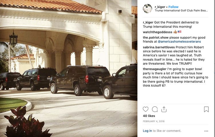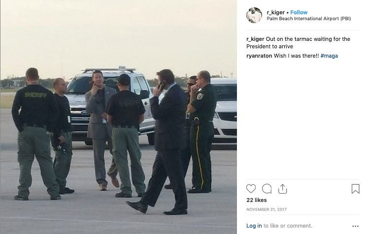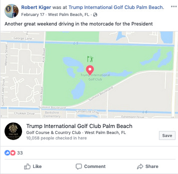 Here’s a smattering of other photos from Kiger’s Facebook and Instagram accounts that show his role in the president’s motorcade, as well as some other access afforded to guests at Mar-a-Lago.