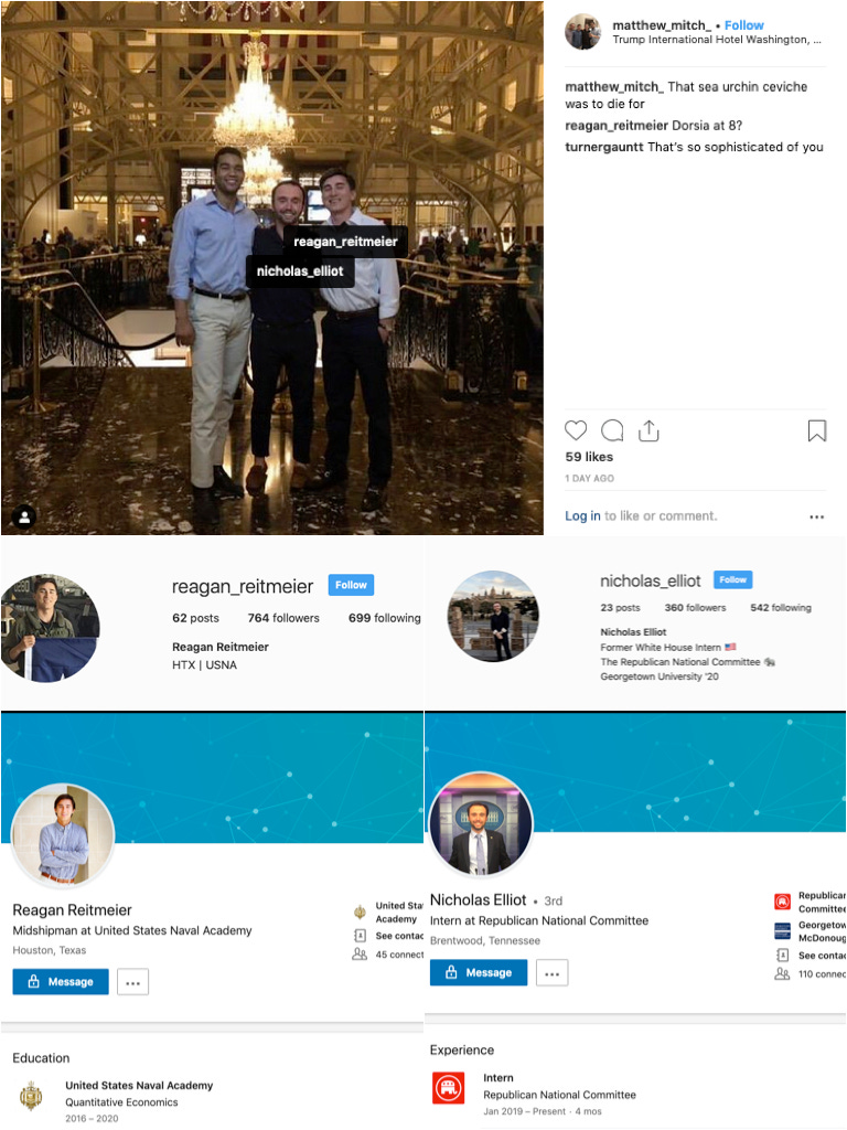 U.S. Naval Academy midshipman Reagan Reitmeier and Republican National Committee intern Nicholas Elliot hung out in a hotel owned by the commander in chief/head of the GOP.