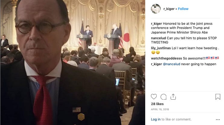 So it appears Kiger’s access is another example of the U.S. government affording special privileges to a Trump Organization customer.