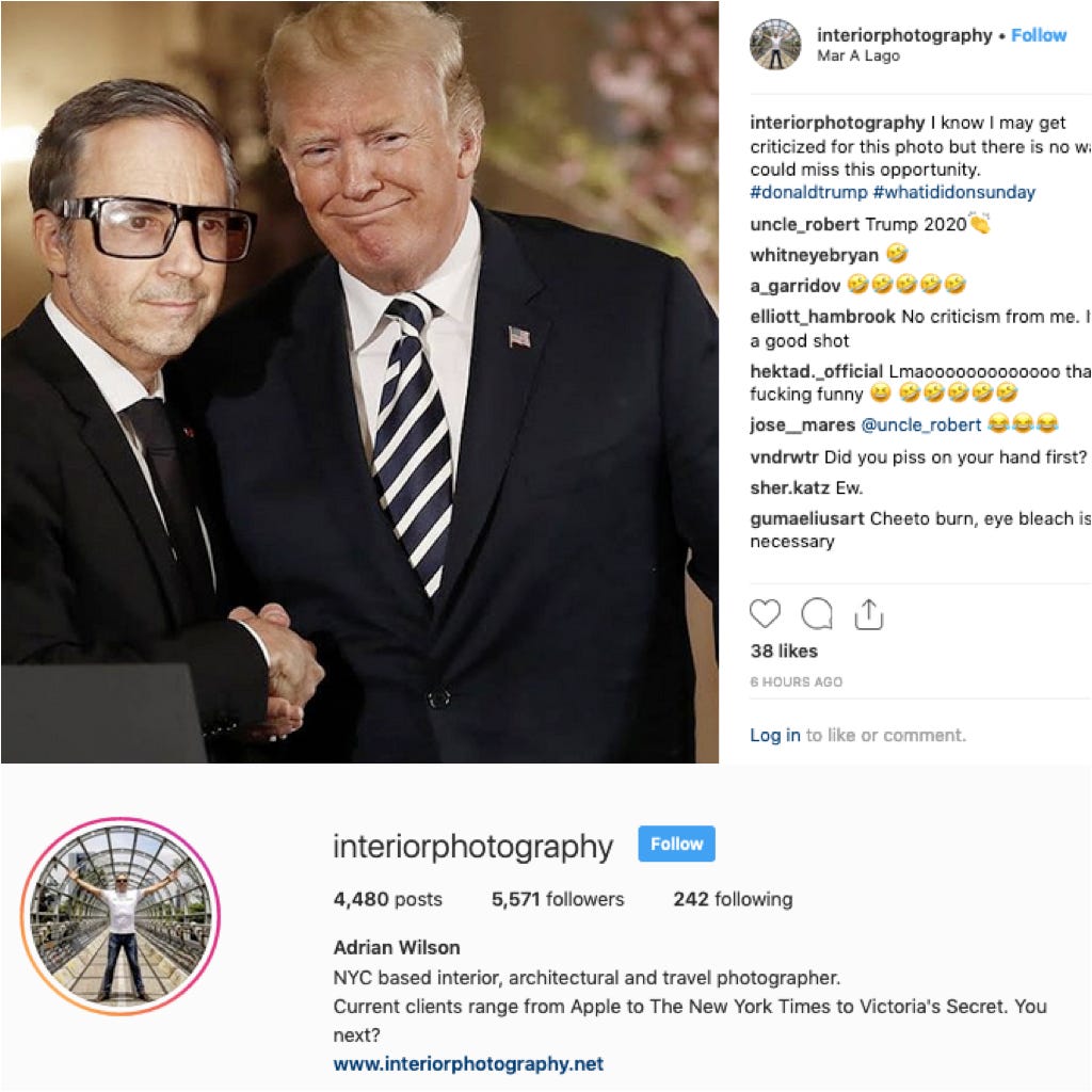 New York-based photographer Adrian Wilson and his glasses got a photo with the president at his private club.