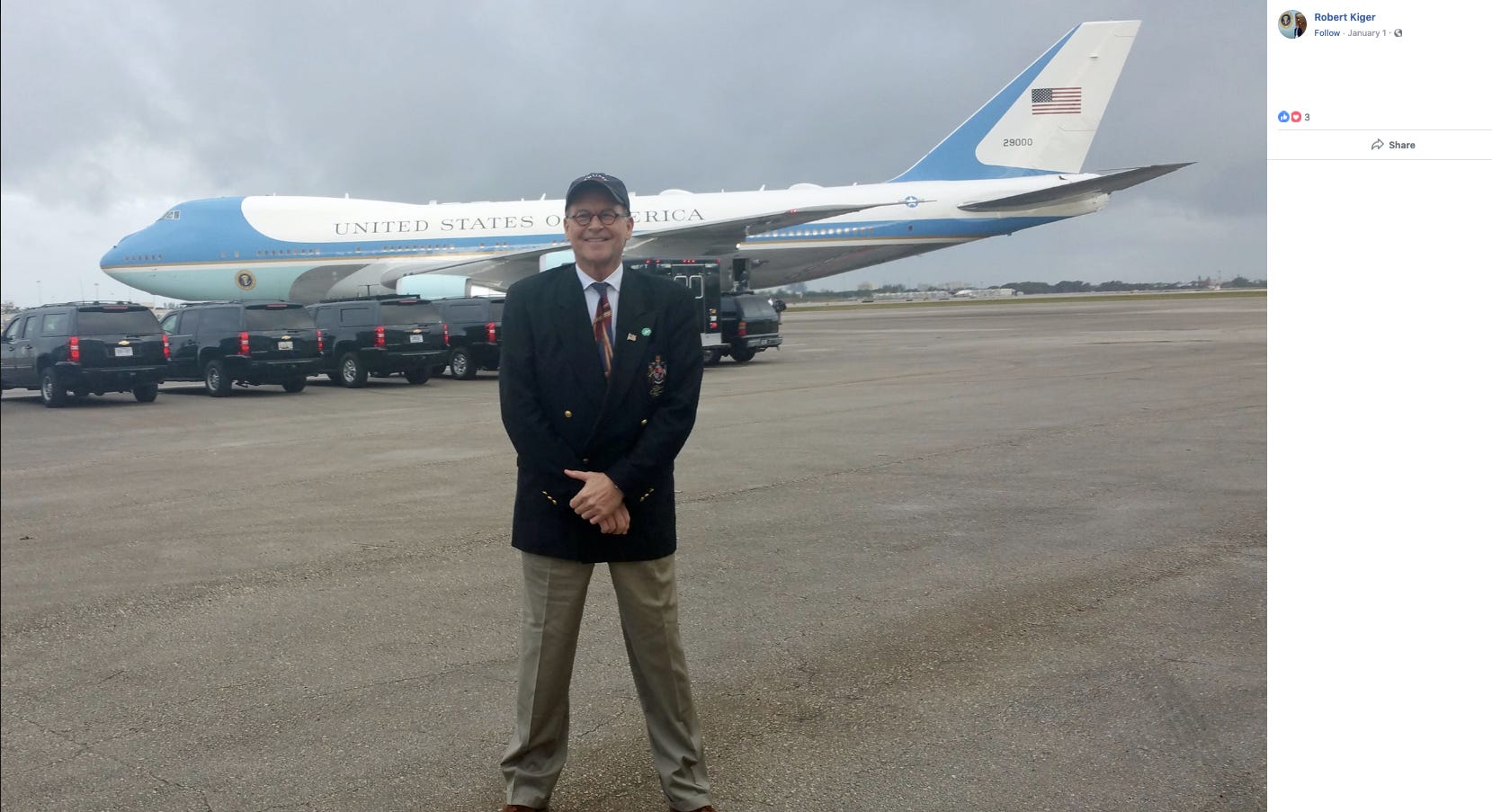 Kiger, a businessman who founded the Citizens for Restoring USA super PAC, did not reply to an inquiry asking if he is a member of Mar-a-Lago, what his duties in the president’s motorcade entail, and how he came to be involved in the drive team and land an Air Force One tour.