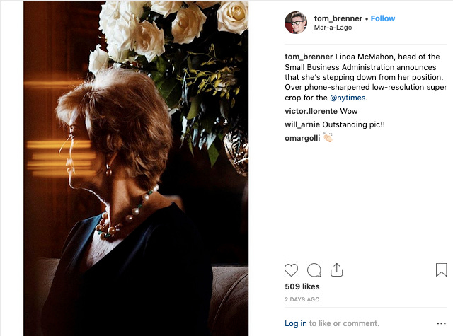 Shortly after announcing she’d be departing Trump’s cabinet, Linda McMahon was at Trump’s private club (photo by Tom Brenner for The New York Times).