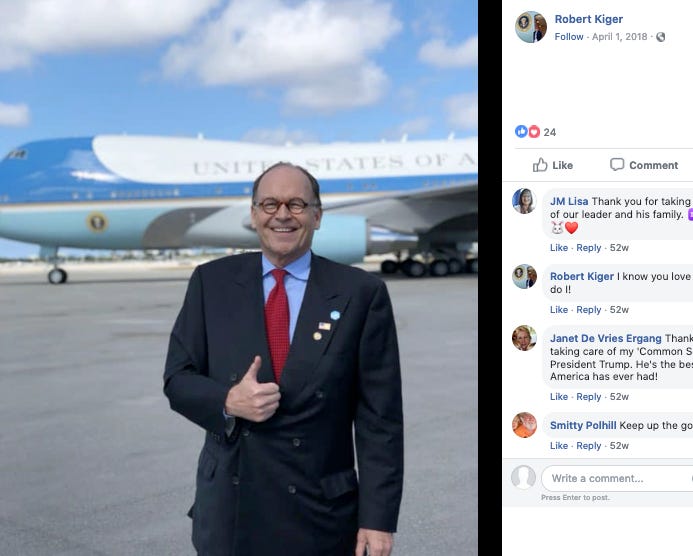 While the membership list at Mar-a-Lago is private, Robert Kiger’s Facebook and Instagram accounts make it clear he’s been a regular at Donald Trump’s private club since before its owner was elected president.
