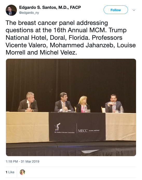 The 16th annual Miami Cancer Meeting (“a three-day course designed for medical oncologists, radiation oncologists, hematologists, radiation oncologists, surgical oncologists, physician assistants (PA), advanced registered nurse practitioners (ARNP), oncology nurses, registered pharmacists, Ph*rm*cy technicians, and radiation therapists”) took place Friday through Sunday at Trump National Doral.