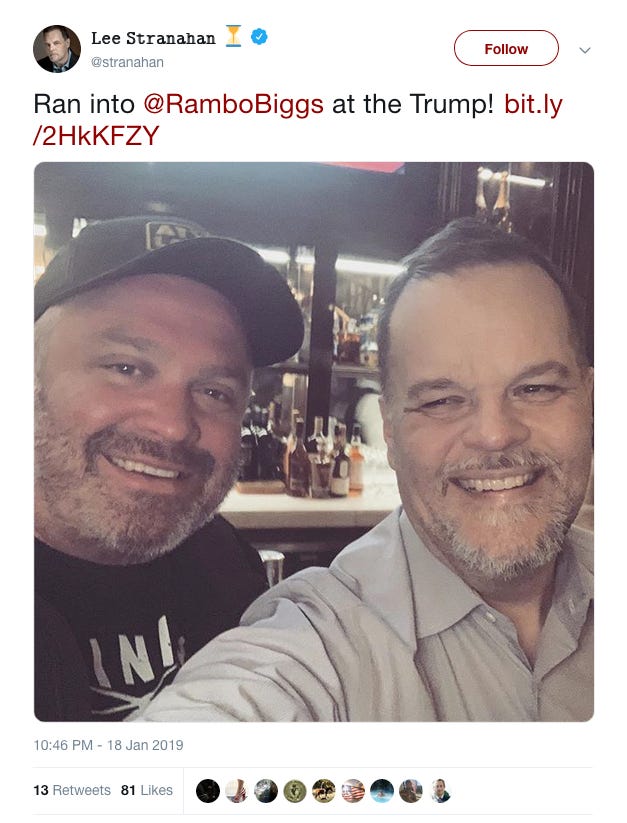And here’s Biggs there on Friday with Sputnik radio host Lee Stranahan, mentioned in Robert Mueller’s indictment of 12 Russian military officers.