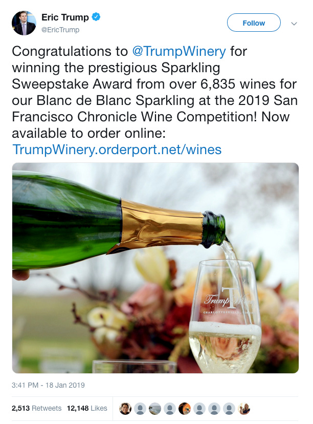 A Trump wine won an award and you can buy the wine online.