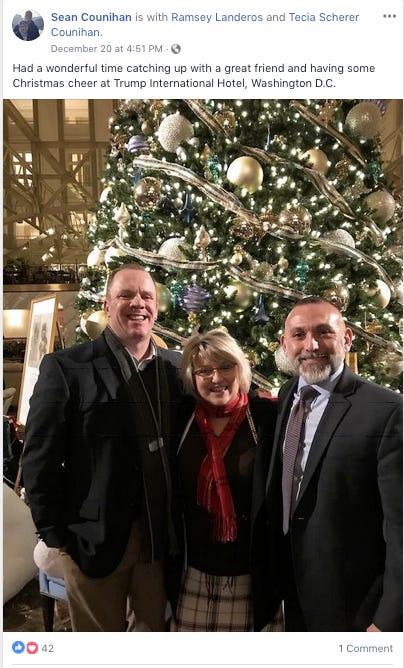U.S. Army Col. Sean Counihan “had a wonderful time catching up with a great friend,” U.S. Army deputy chief of staff Ramsey Landeros, at the commander-in-chief’s hotel. Also, Christmas cheer was had.
