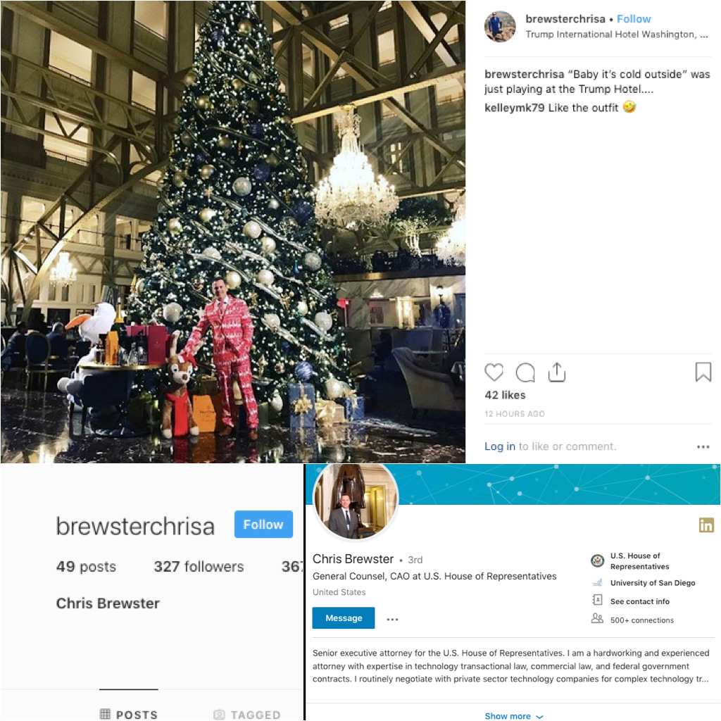 General counsel for the chief administrative officer at U.S. House of Representatives, Chris Brewster, who’s also a lieutenant colonel in the U.S. Marine Corps, noted “‘Baby it’s cold outside’ was just playing at the Trump Hotel....”