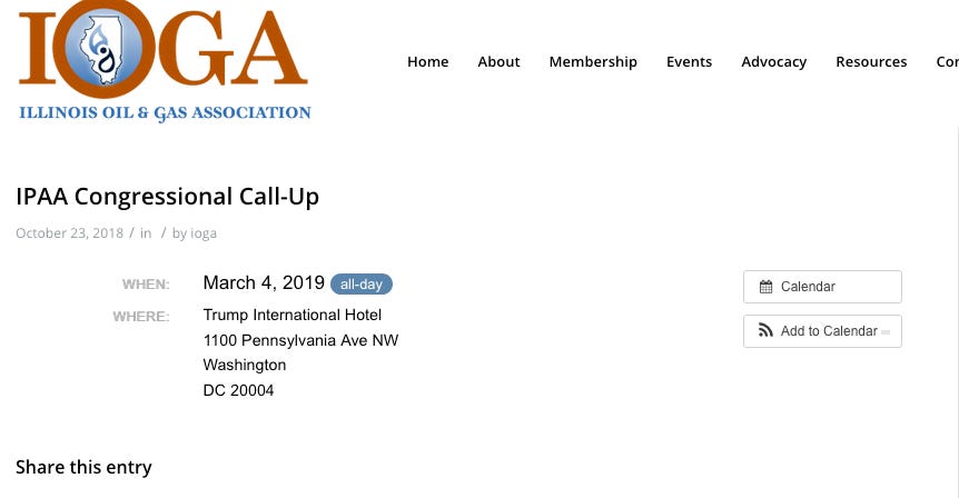 The IPPA is a trade group for the fossil fuel industry. “The Call-Up is one of the best ways for IPAA members to meet and discuss pending issues with members of the House and Senate,” according to IPAA’s description of last year’s event—which also was held at the Trump Hotel D.C. In 2018, “members participated in 150 meetings with House and Senate Members and helped influence change on Capitol Hill” per the group’s marketing material. And Rep. Steve Scalise (R–LA) was a featured speaker.