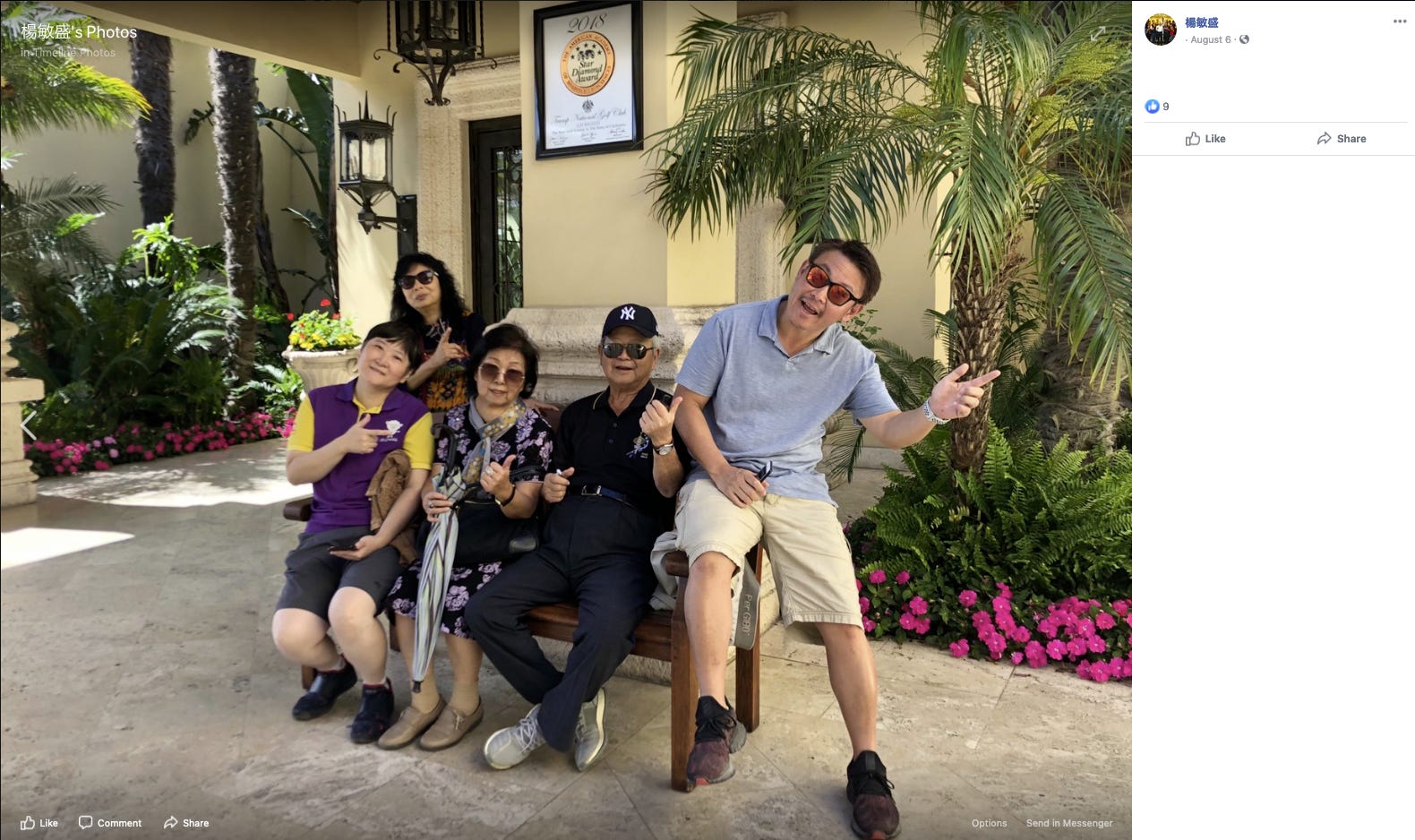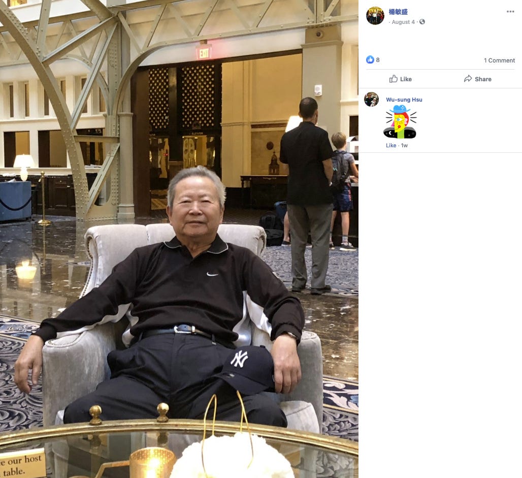 Yang Minsheng, the Kuomintang party’s chair for Taoyuan City, Taiwan’s fifth largest metropolis with more than 2.1 million residents, posted photos on his personal Facebook profile and professional page from at least five different Trump properties between July 23 and Aug. 6.