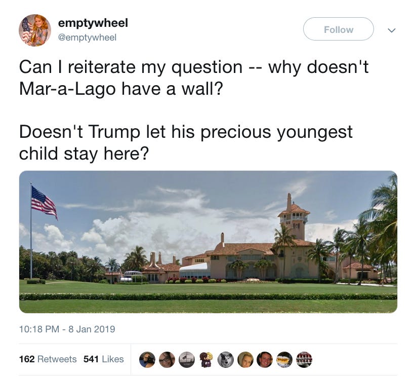 Despite President Trump proclaiming his private club the winter White House, journalist Marcy Wheeler pointed out that Mar-a-Lago does not have a wall.