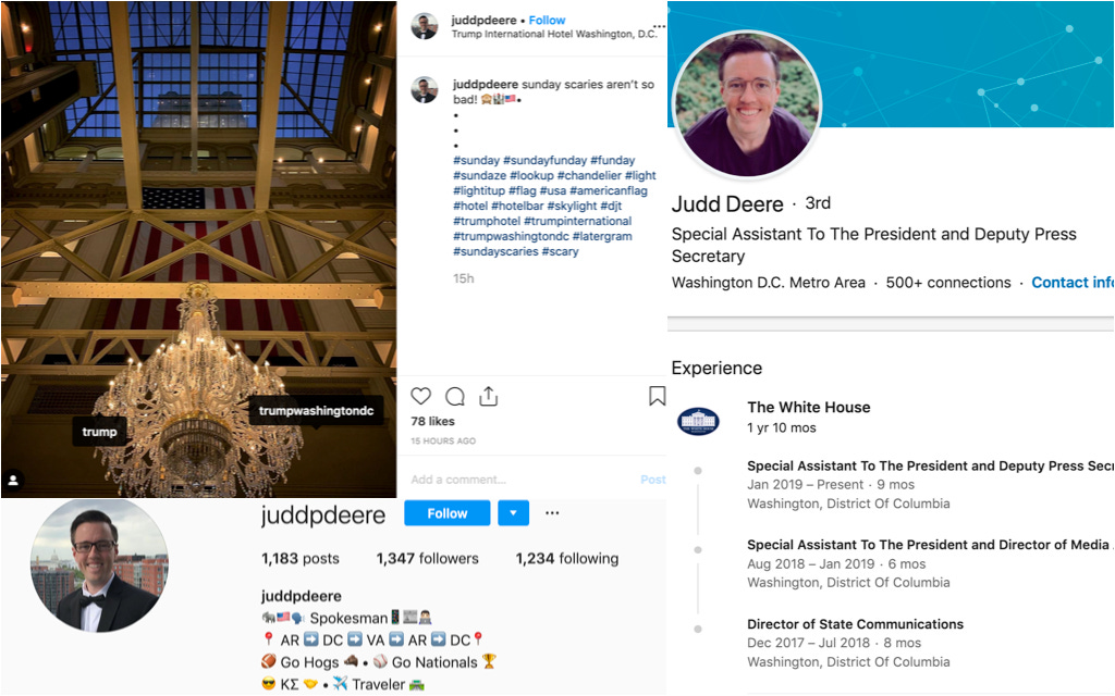 A special assistant to the president and deputy press secretary, Judd Deere, got the better of the Sunday scaries at his boss’s D.C. hotel.