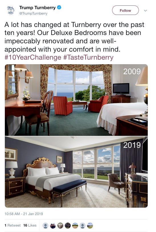 “The Turnberry has been losing an astonishing amount of money, including twenty-three million dollars in 2016,” Adam Davidson wrote for The New Yorker last year. Yesterday, Trump Turnberry shows off where some of that money went.