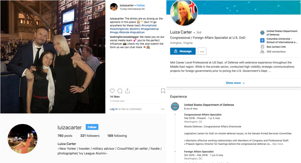 A congressional and foreign affairs specialist at the Department of Defense, Luiza Carter, enjoyed strong drinks and good company.