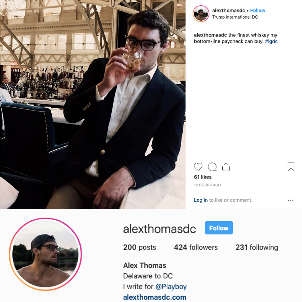 Alex Thomas, Playboy’s Washington political correspondent, sipped a little whiskey.