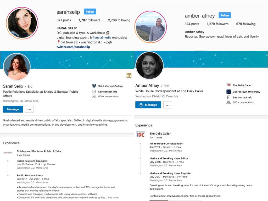 Assembled here are Sarah Selip of Shirley & Banister Public Affairs (for 30 years, it has “successfully represented think tanks, associations, public policy organizations, political candidates, political action committees, corporations, book publishers, authors, and foreign governments”); Fox News pundit/Trump campaign advisor, Harlan Hill; former Breitbart News London editor and advisor to Nigel Farage, Raheem Kassam; and The Daily Caller’s White House correspondent, Amber Athey. “#MAGA”.