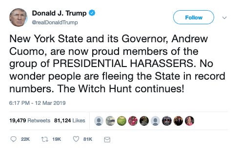 The president appeared to respond to New York state’s investigations of his businesses and foundation.