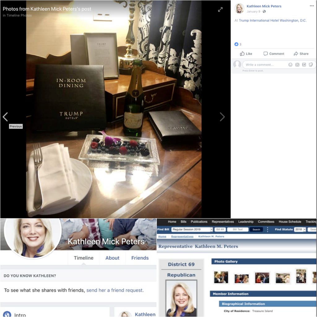 1100 Pennsylvania already reported that Florida State Rep. Kathleen Mick Peters (R) enjoyed some champagne at the hotel before heading off to Rick Scott’s (R) swearing in as a U.S. Senator. Now we know Peters wasn’t just drinking at the hotel; she was staying there too.