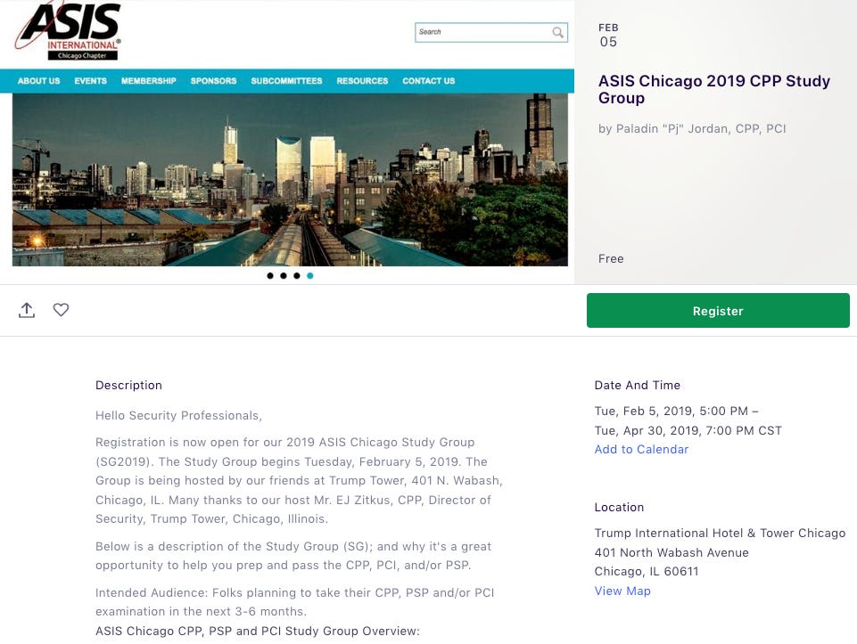 ASIS, “a worldwide organization dedicated to strengthening the global security landscape,” has scheduled 12 weekly study groups to help attendees pass its certified protection professional, professional certified investigator, and physical security professional exams. Those licensees “conveys to your peers, employees, and employer that you possess substantial, relevant experience as well as demonstrated and tested competence.”