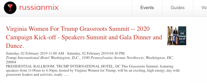 Russian Mix’s calendar of Russian Washington, D.C. events now includes the Virginia Women for Trump’s summit and gala.