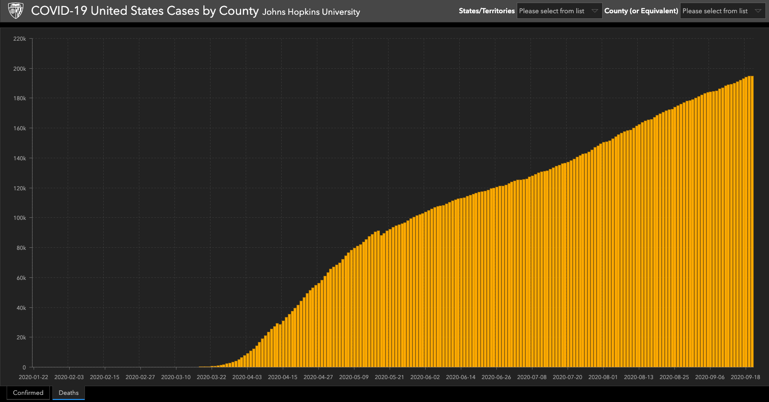 According to Johns Hopkins University, COVID-19 has killed more than 199,500 people in the United States.