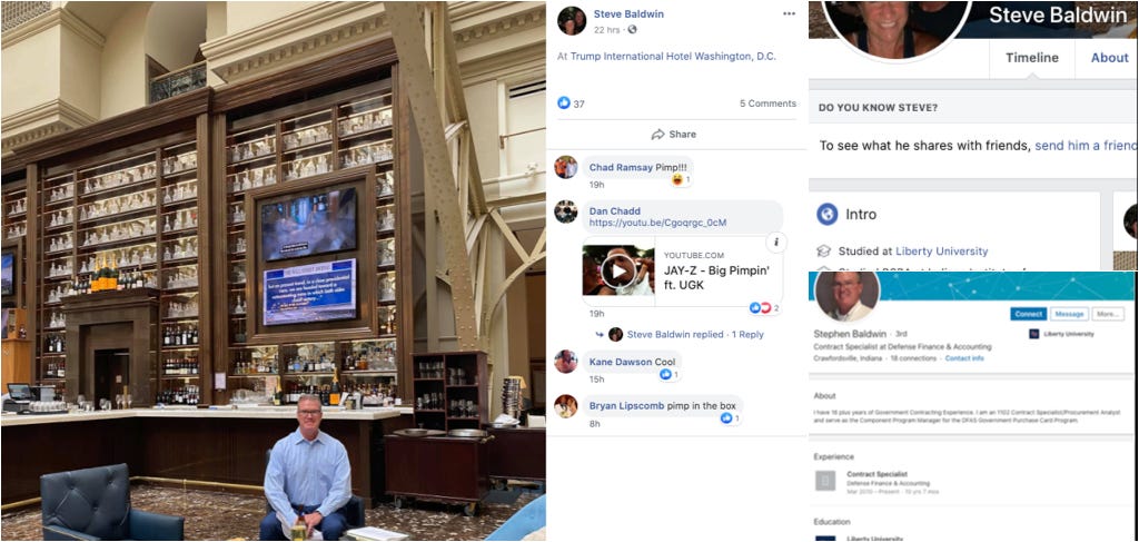Stephen Baldwin, an experienced government contractor, posed at the president’s D.C. hotel.