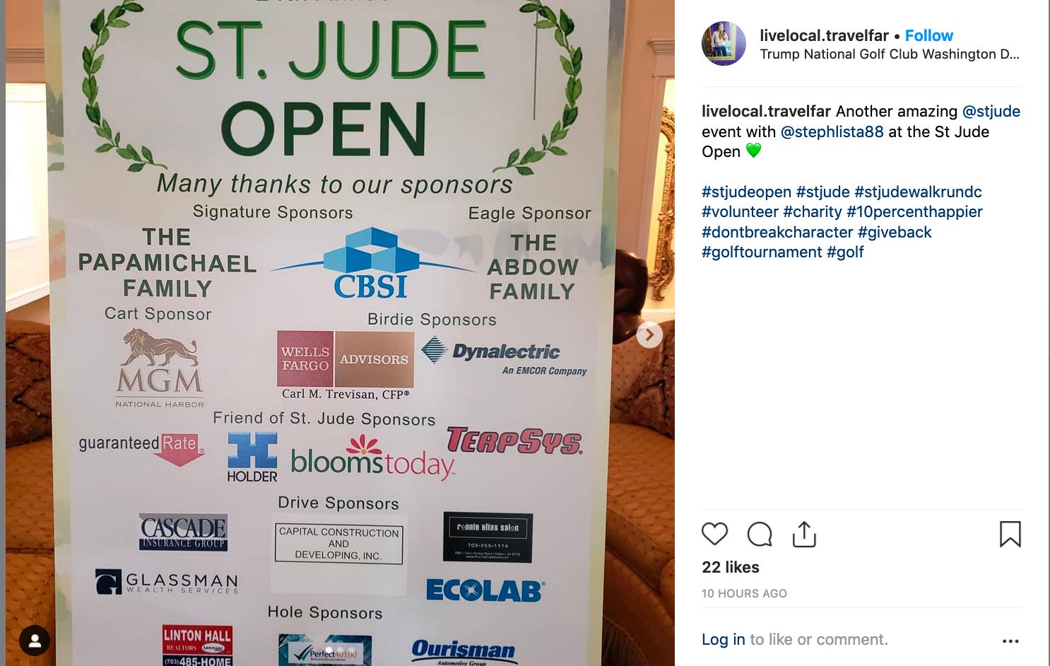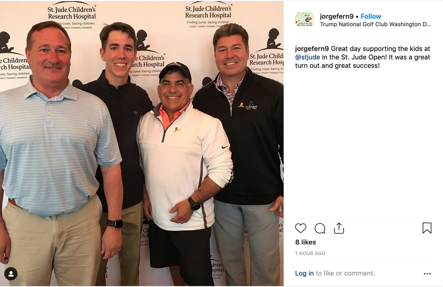 Yesterday Trump National Golf Club Washington, D.C. (which is in Sterling, Virginia) hosted the St. Jude Open. And in July, Trump Colts Neck will welcome the inaugural St. Jude New Jersey Golf Classic.