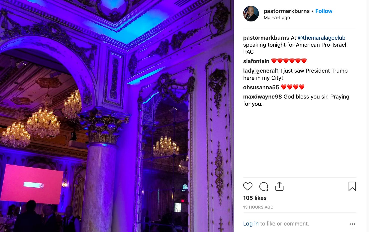 According to social-media posts, the event included praise, worship, and dinner. As one pastor wrote, “I’ve been to a lot of places but the President’s house down in the south is pretty cool.” Prominent pro-Trump pastor Mark Burns was among the speakers.