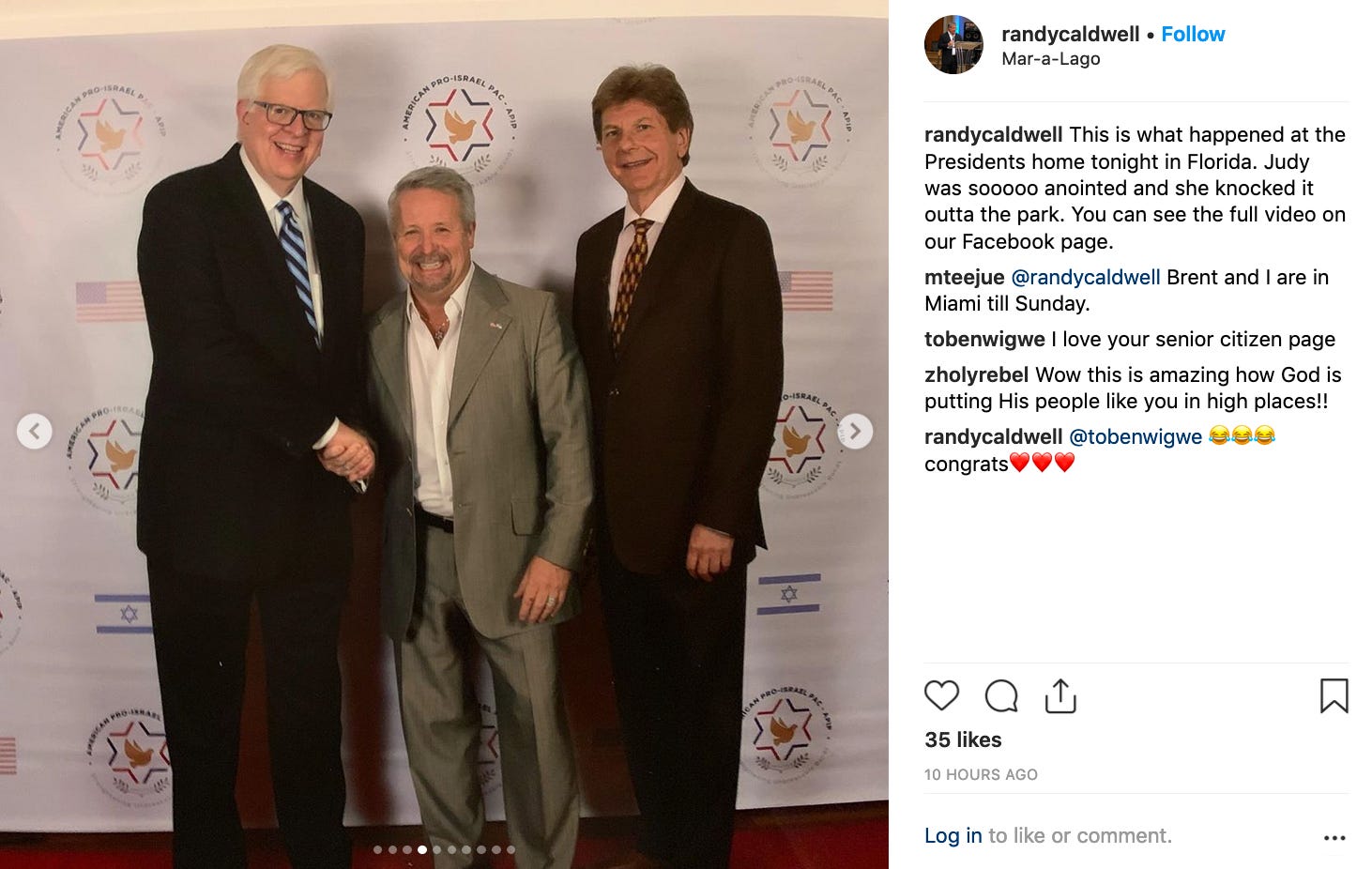 Last night’s gala was at least the third event “America’s only conservative pro-Israel PAC” has hosted at Mar-a-Lago in the past seven months. In March, it held a fundraiser for itself there. While it’s not clear how APIP assists Israel beyond offer prayers, it does plenty to help the U.S. president’s business. As 1100 Pennsylvania reported in March: