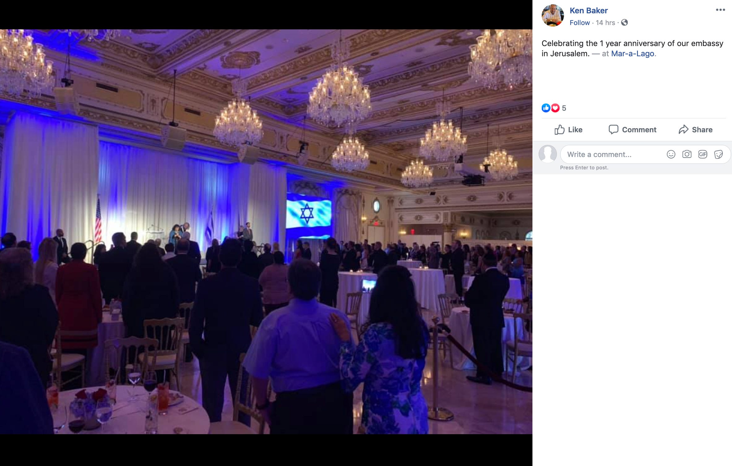American Pro-Israel PAC returned to Mar-a-Lago to mark anniversary of U.S. embassy opening Jerusalem