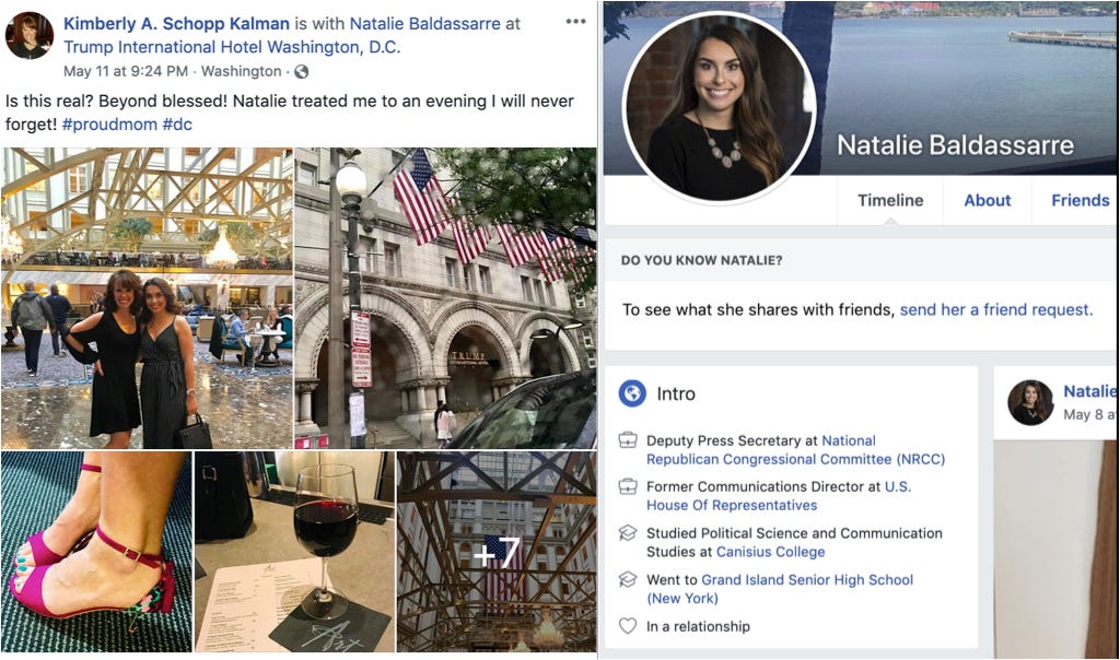 The deputy press secretary at the National Republican Congressional Committee, Natalie Baldassarre, treated her mom to “an unforgettable evening” at the head of the party’s hotel.