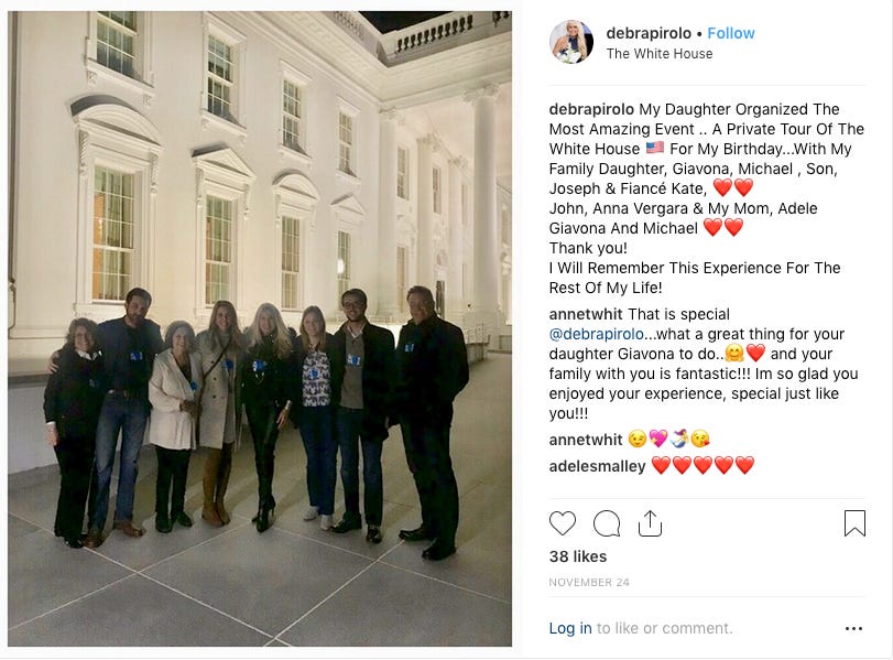 “My Daughter Organized The Most Amazing Event .. A Private Tour Of The White House 🇺🇸 For My Birthday,” Debra Pirolo posted on Instagram this November.