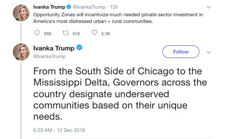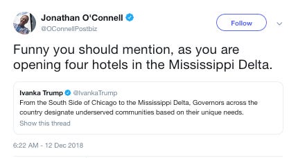 Ivanka Trump plugged the Trump administration’s new opportunity zones and how they’ll benefit the Mississippi Delta.Washington Post reporter Jonathan O’Connell promptly pointed out why she may have chosen to highlight that region.