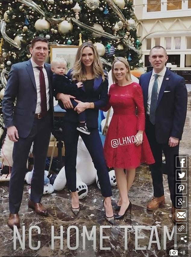 Trump 2020 campaign advisor and President Trump’s daughter-in law, Lara Lea Trump, posed by the hotel’s tree with her son.